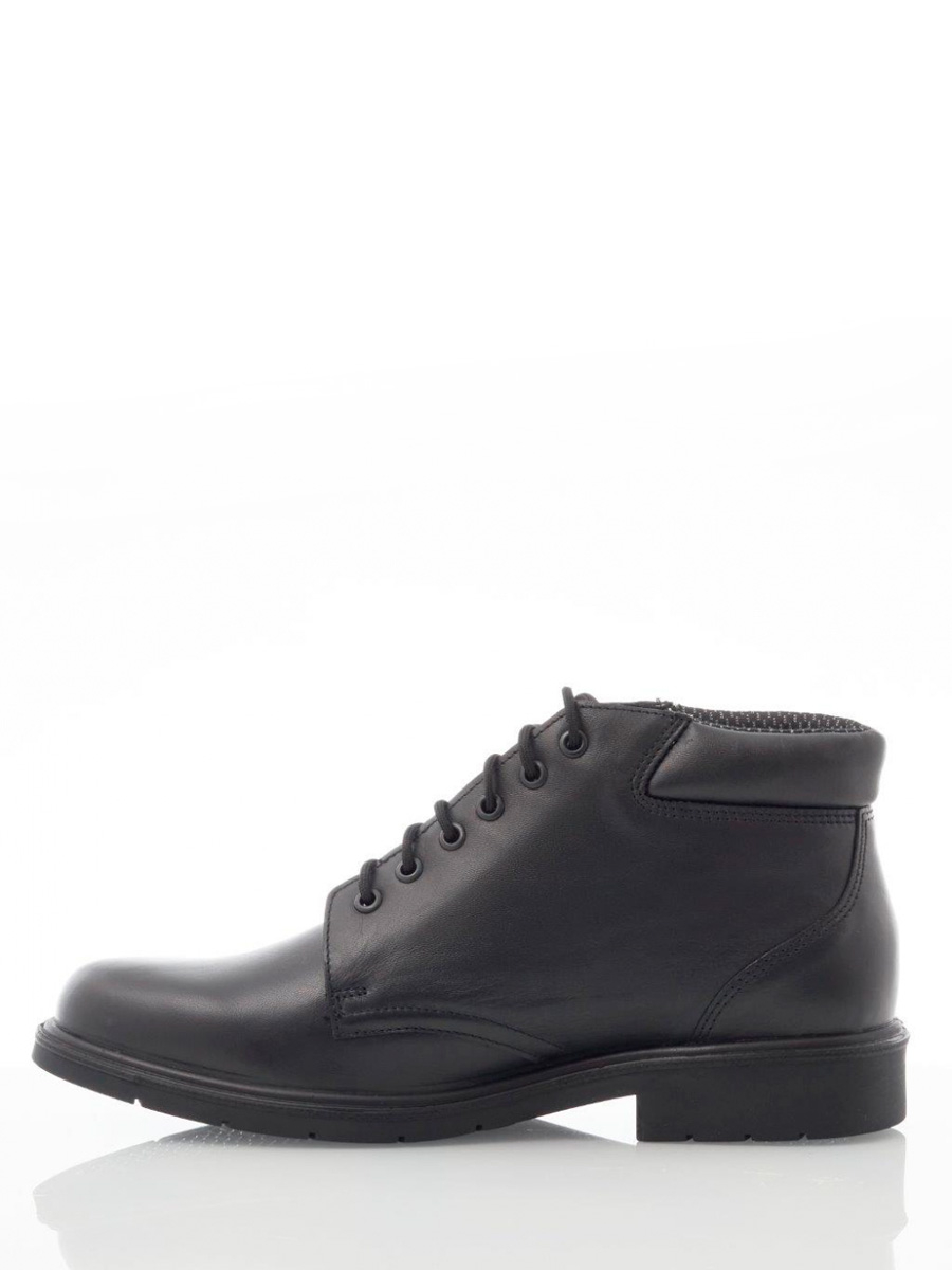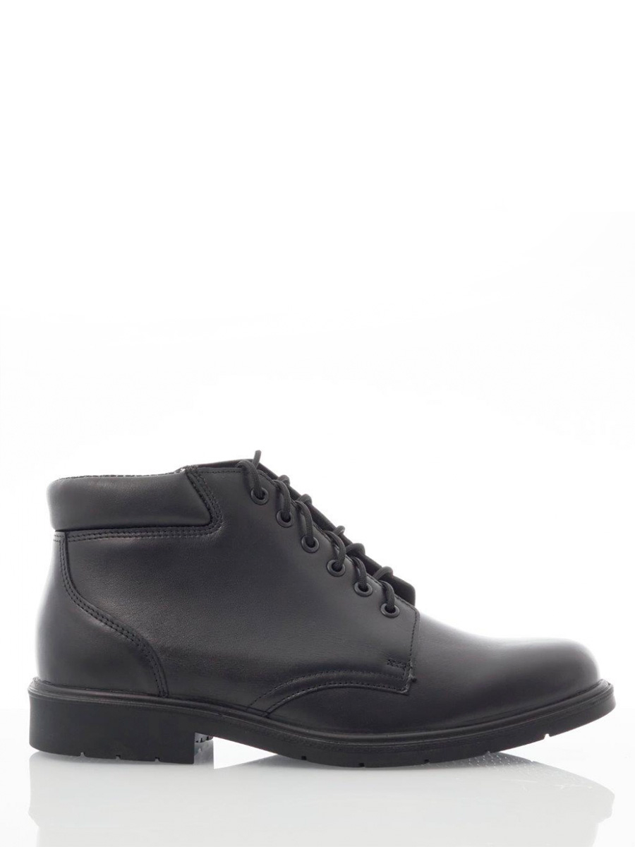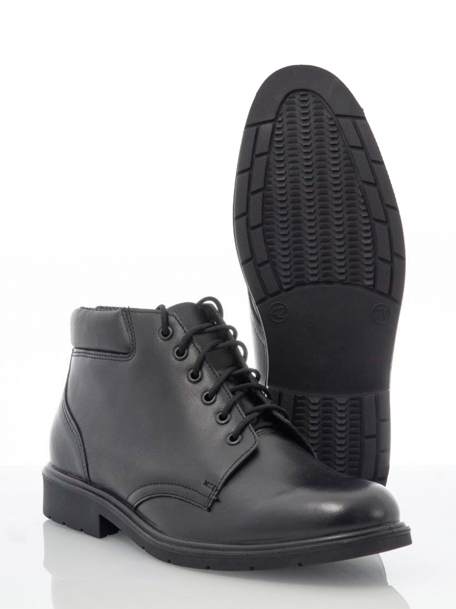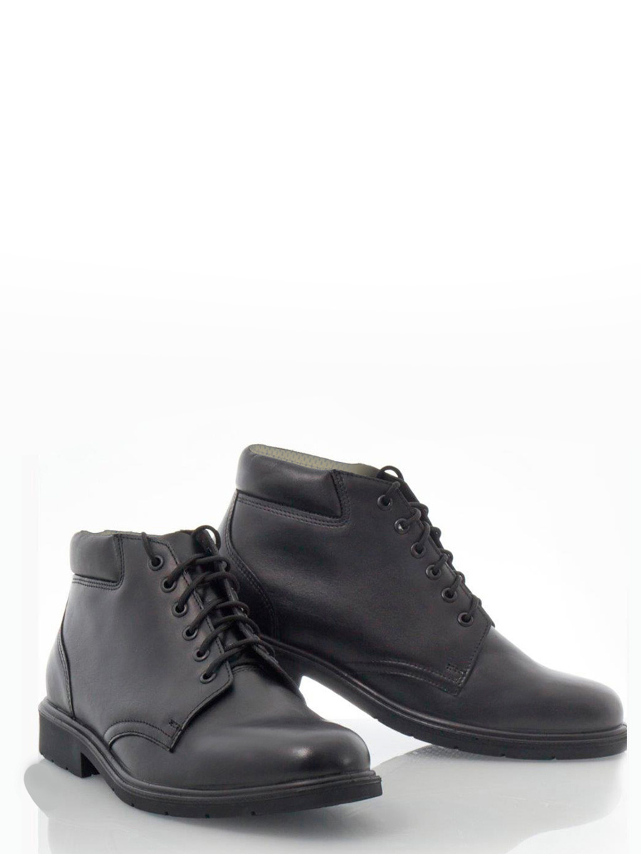 Комфортные мужские ботинки из гладкой натуральной кожи черного цвета, которые стали элегантным сочетанием современных решений и традиционного образа. Практичности модели добавляют шнурки в тон, которые позволяют надежно зафиксировать ногу.