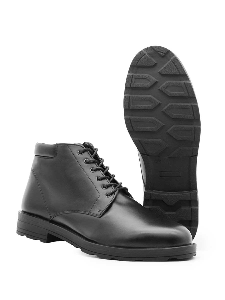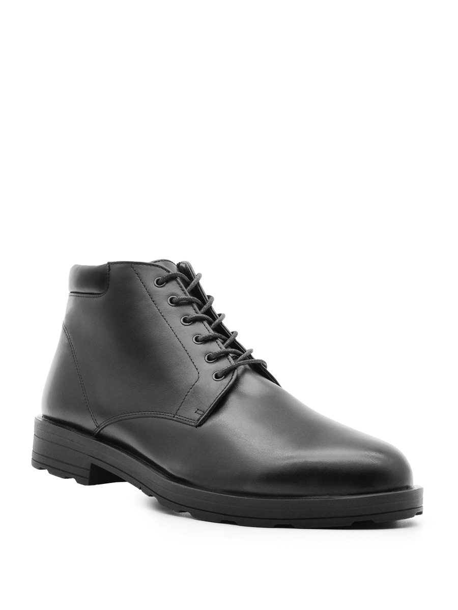 Ботинки на шнуровке — самая функциональная демисезонная модель обуви. Она легко подстраивается под образы в разных стилях и остается практичной. Изделие выполнено из гладкой натуральной кожи в универсальном черном цвете. Пара дополнена подошвой с выраженным протектором, который предотвращает скольжение, и шнуровкой, надежно фиксирующей ботинки.
