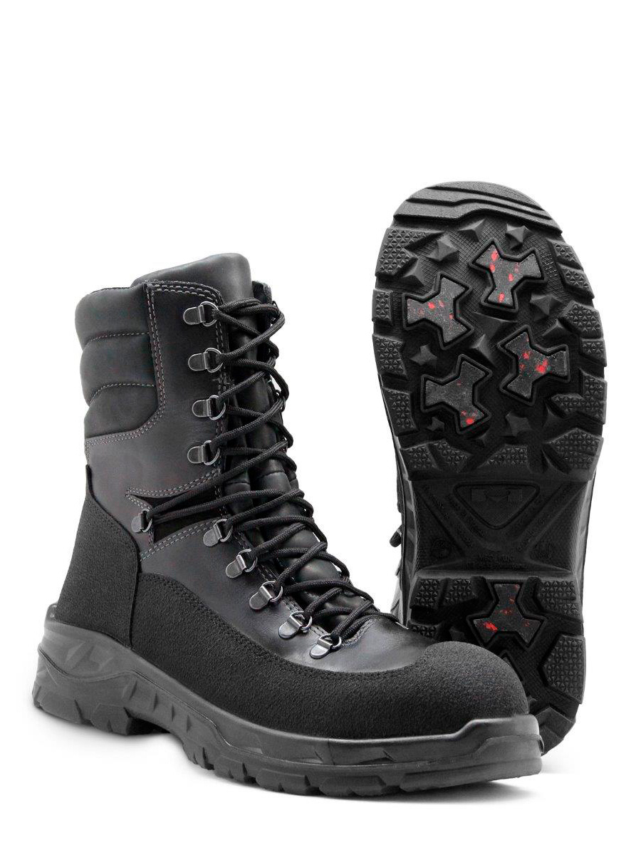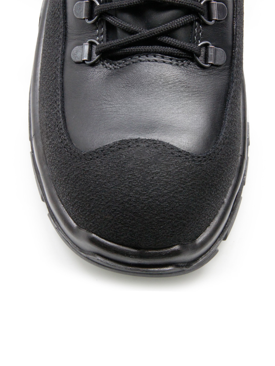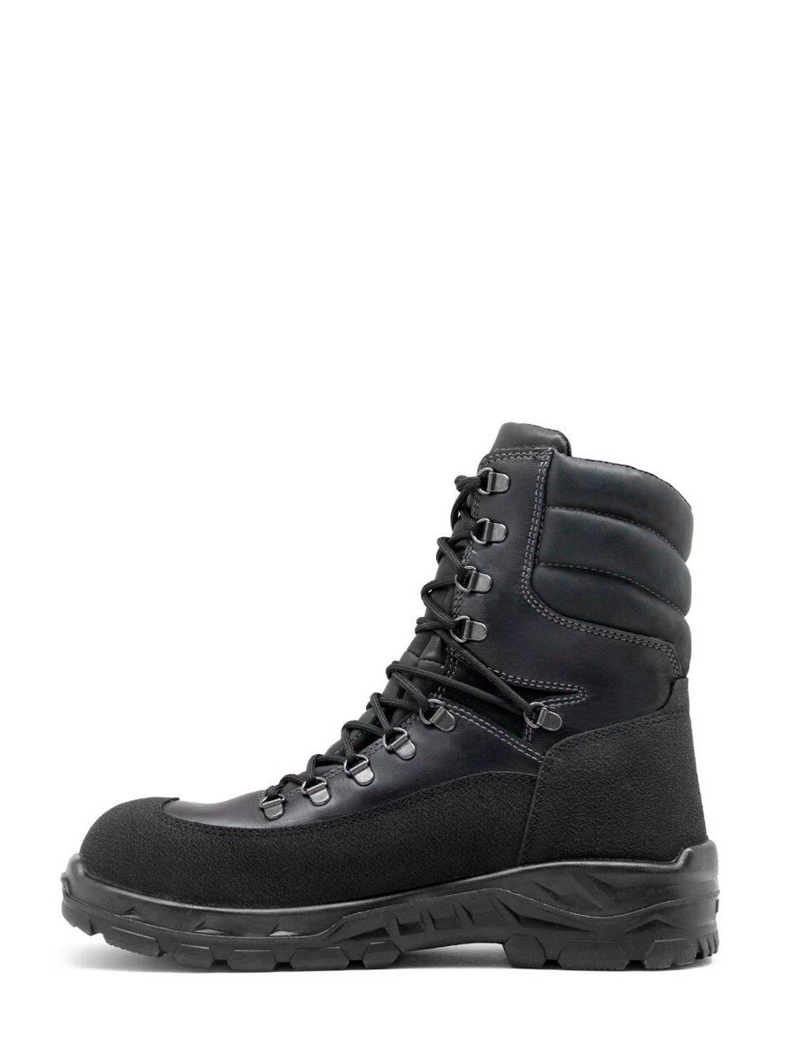 Ботинки созданы для тех, кто ценит надежность и функциональность в самых суровых зимних условиях. Модель из натуральной черной кожи с надежной шнуровкой обеспечивает идеальную посадку и полный контроль облегания по всей высоте голенища. Объемная подошва с агрессивным протектором гарантирует уверенное сцепление даже на обледеневших поверхностях. Внутреннее оснащение из натурального меха создает эффект термоса, сохраняя тепло в сильные морозы. Универсальный силуэт и лаконичное оформление подойдут как для городского, так и для активного стиля.