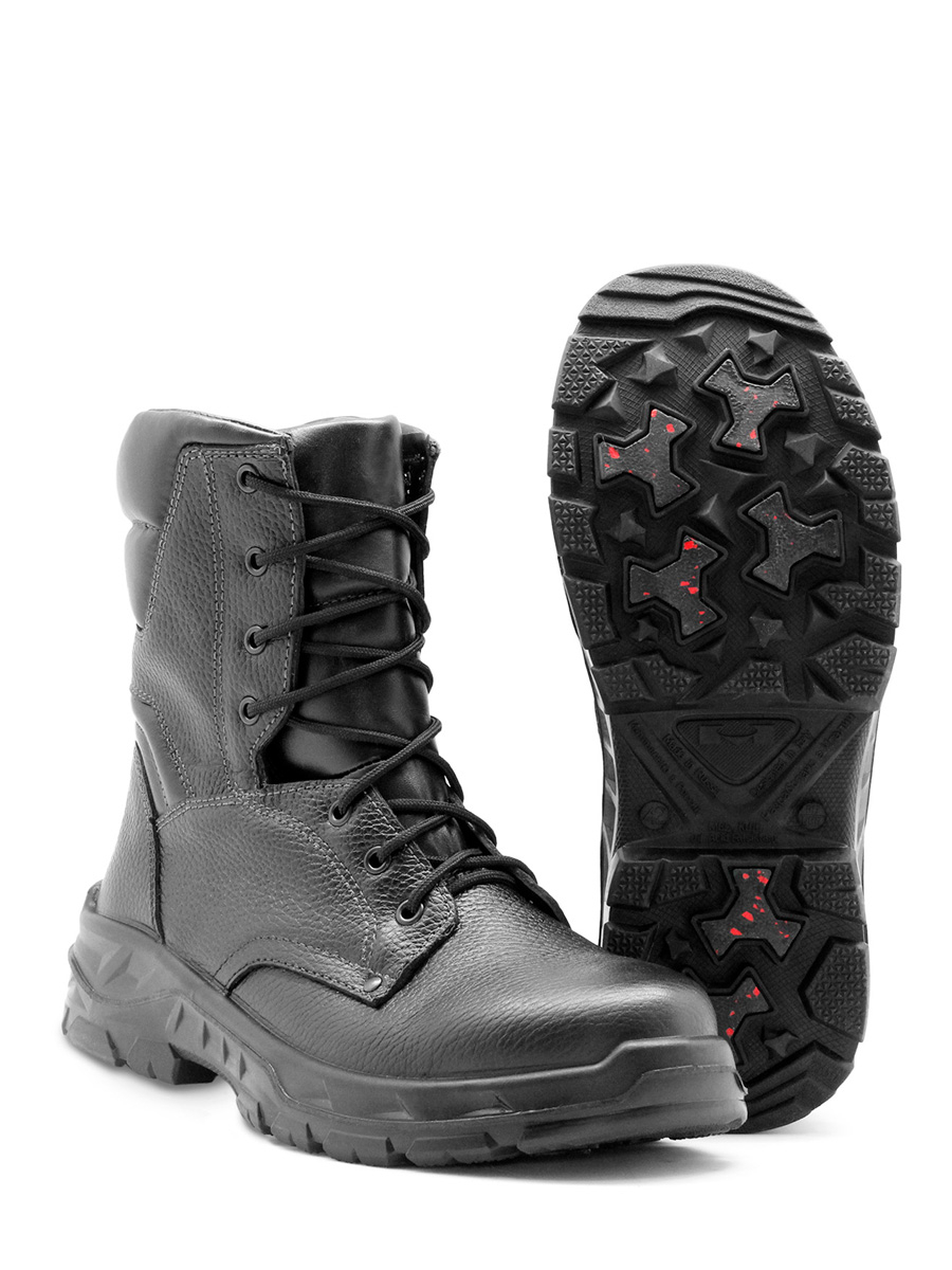 Высокие ботинки из натуральной кожи на шнуровке — универсальный выбор для холодного сезона. Модель утеплена подкладкой и стелькой из шерсти, надежно сохраняющей тепло в демисезонный период. В конструкции берцев предусмотрен мягкий кожаный кант, который обеспечивает плотное облегание стопы, а система шнуровки дает возможность более точной посадки обуви по ноге. Лаконичный стиль подчеркивает практичность модели и делает её актуальной как в городе, так и за его пределами.