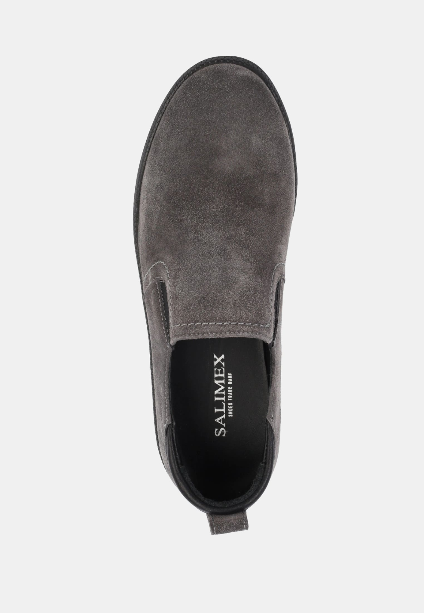 Стильные слипоны из мягкой замши благородного синего оттенка, воплощающие комфорт и элегантную простоту. Лаконичный дизайн без шнуровки подчеркивает современный характер пары, а эластичные вставки по бокам обеспечивают лёгкость надевания и идеальную посадку. Эти слипоны отлично подойдут для повседневных образов — они гармонично сочетаются с джинсами, чиносами или льняными брюками, добавляя образу лёгкость, уверенность и непринуждённое изящество.