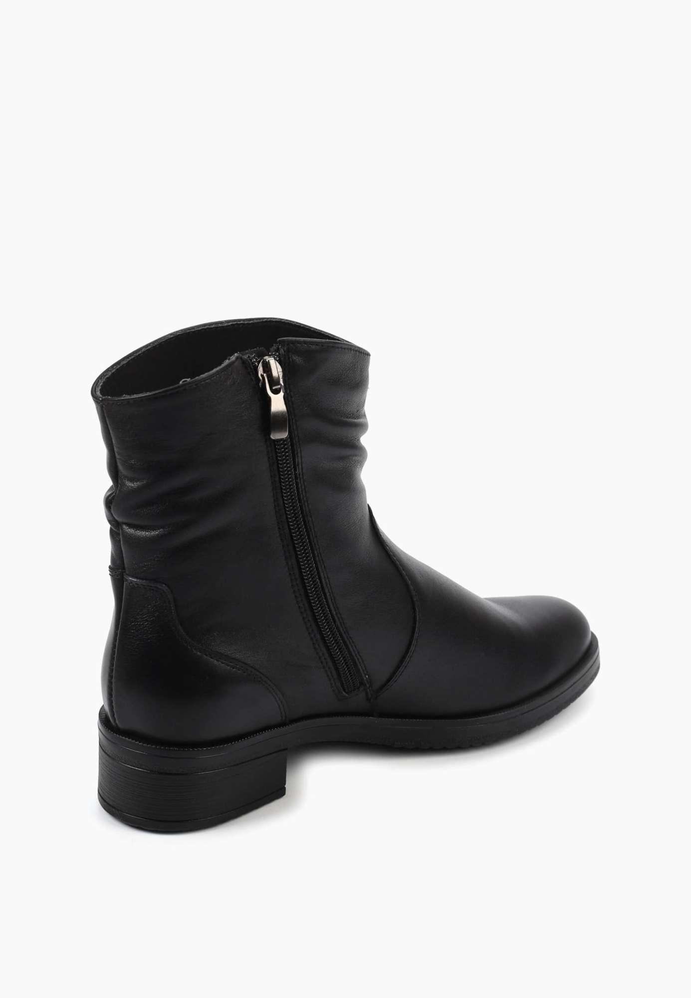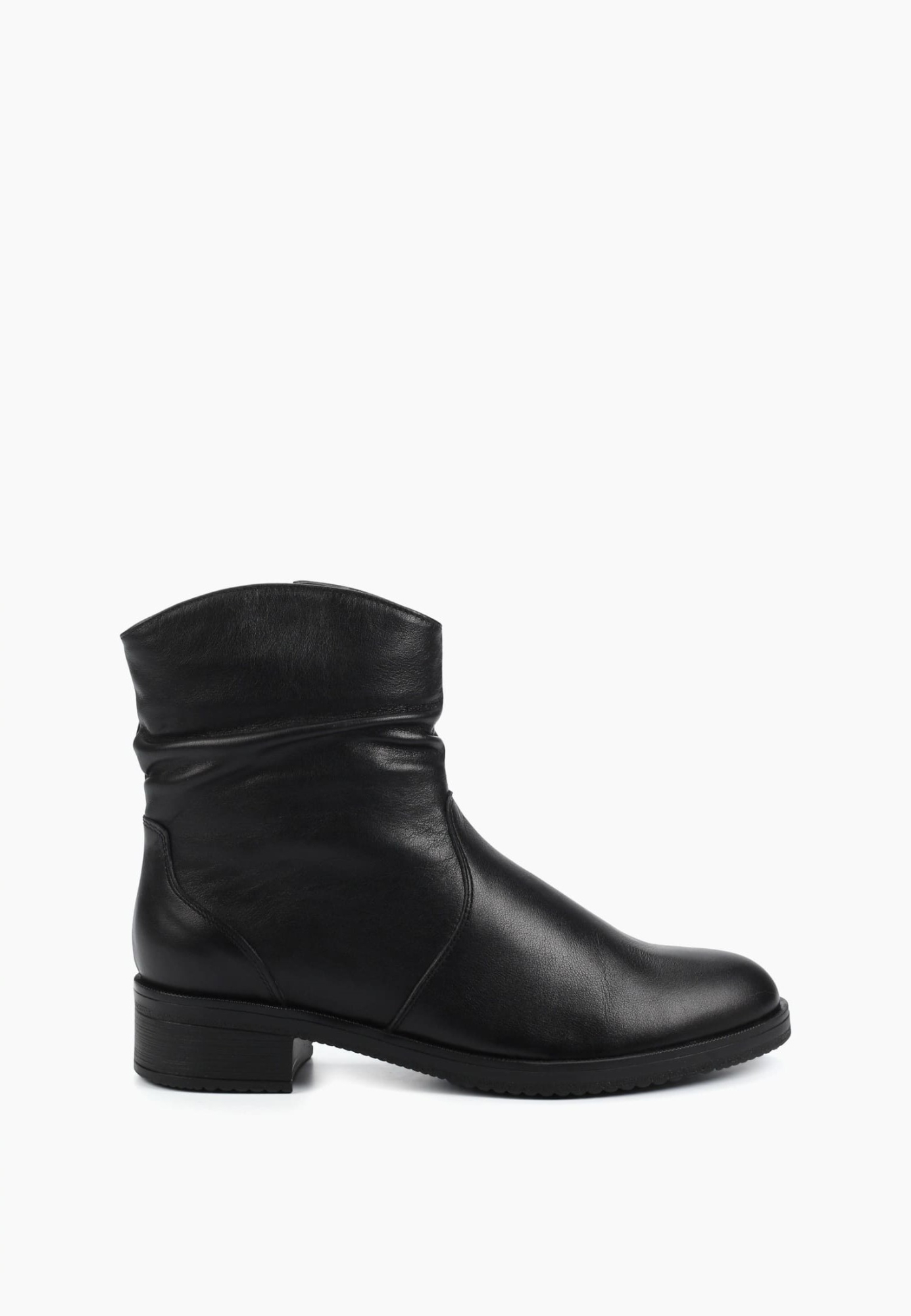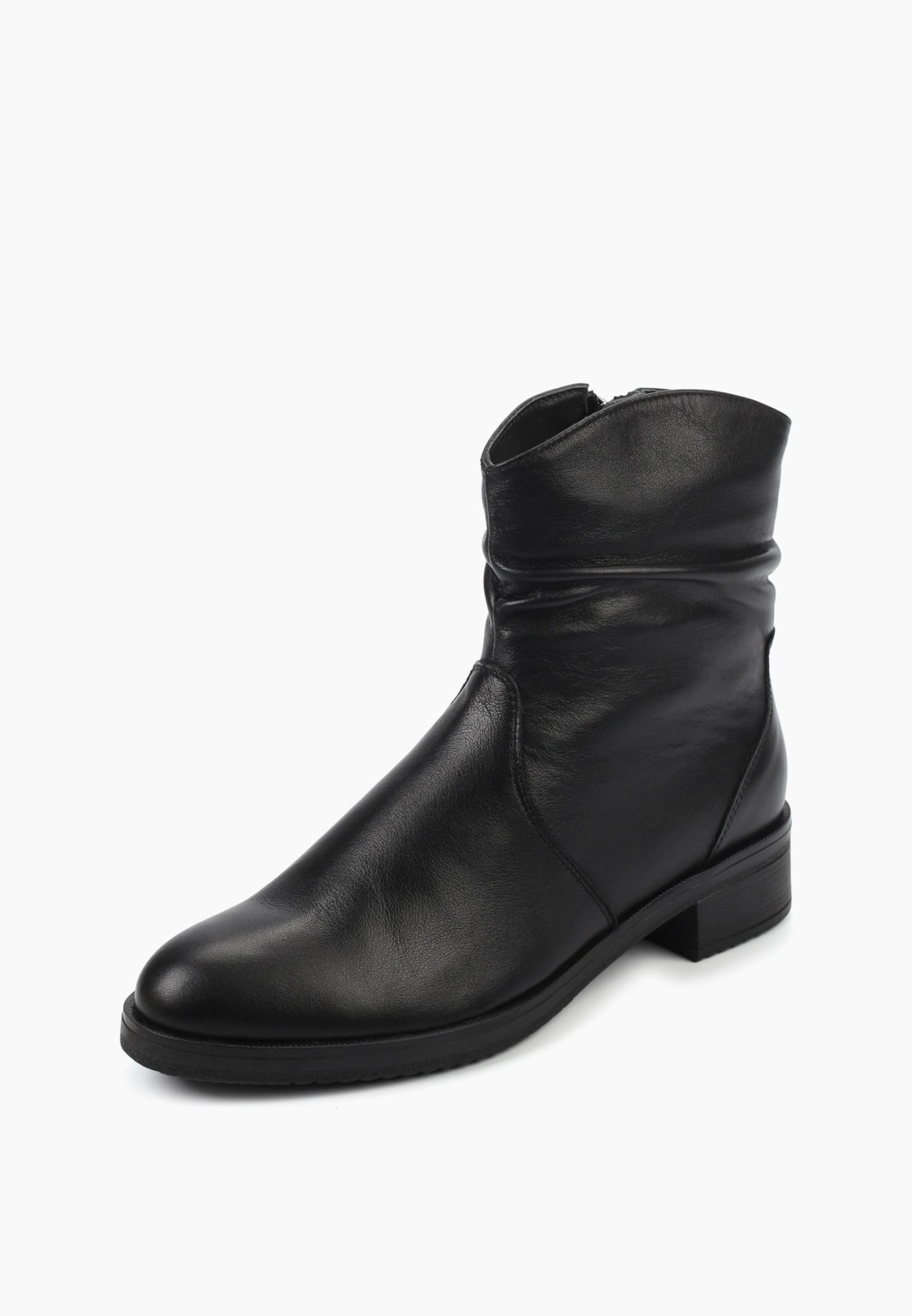 Лаконичные чёрные полусапоги из мягкой натуральной кожи с деликатной сборкой в области голенища, создающей элегантный акцент. Благодаря устойчивому каблуку и анатомичной форме колодки они обеспечивают максимальный комфорт в течение всего дня. Боковая молния добавляет удобства при надевании, а гладкая текстура кожи подчёркивает изысканность и универсальность пары. Эти ботинки идеально подойдут как для повседневных городских образов, так и для более утончённых сочетаний — например, с миди-юбкой, платьем-свитером или прямыми брюками.