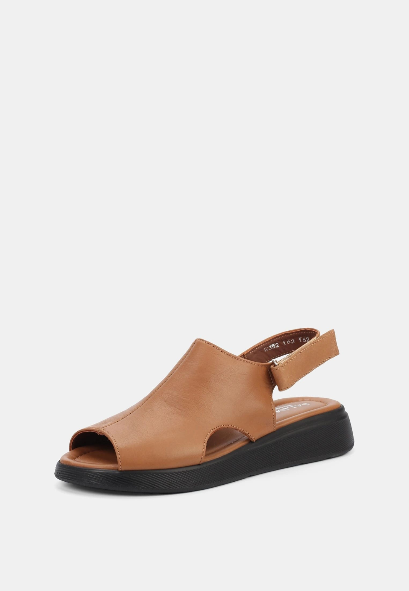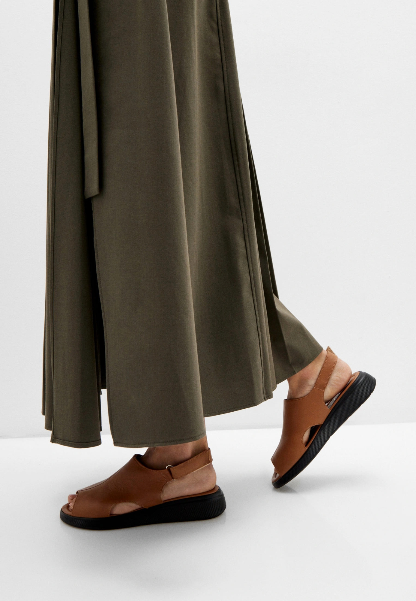 Стильные женские сандалии из мягкой натуральной кожи в теплых карамельно-коричневых тонах, созданные для комфорта и элегантной простоты. Открытый мыс и боковые вырезы придают обуви легкость и позволяют коже дышать, а эластичная задняя вставка обеспечивает идеальную посадку. Черная анатомическая подошва подчеркивает современный контраст и гарантирует удобство при ходьбе. Эти сандалии станут универсальной базой летнего гардероба — идеально сочетаются с льняными платьями, шортами и широкими брюками, добавляя образу естественности, уюта и утонченного стиля.