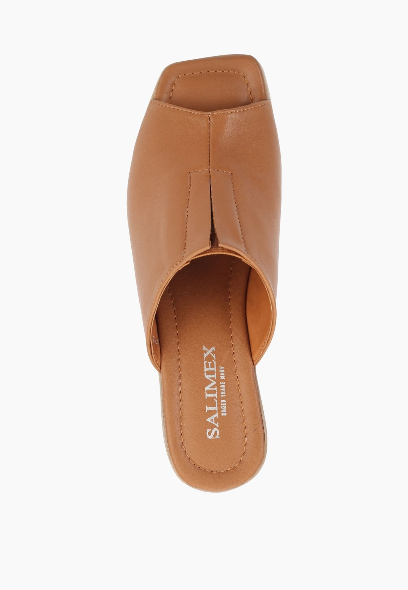 Эффектные сабо из натуральной кожи, созданные для смелых и уверенных в себе женщин. Геометричный квадратный мысок и устойчивый каблук придают обуви современный характер. Открытый мыс и мягкий кожаный верх обеспечивают комфорт и лёгкость при носке, а анатомическая колодка сохраняет удобство даже в динамичном ритме дня.