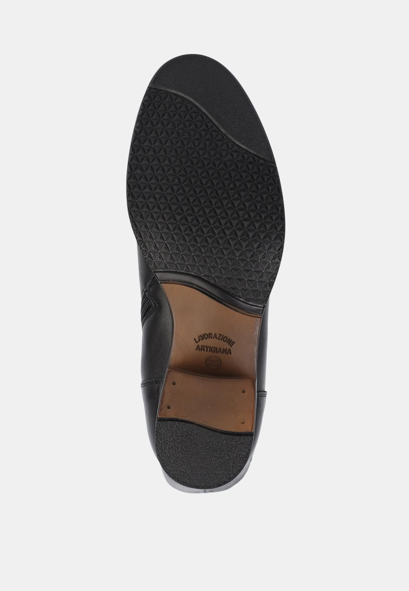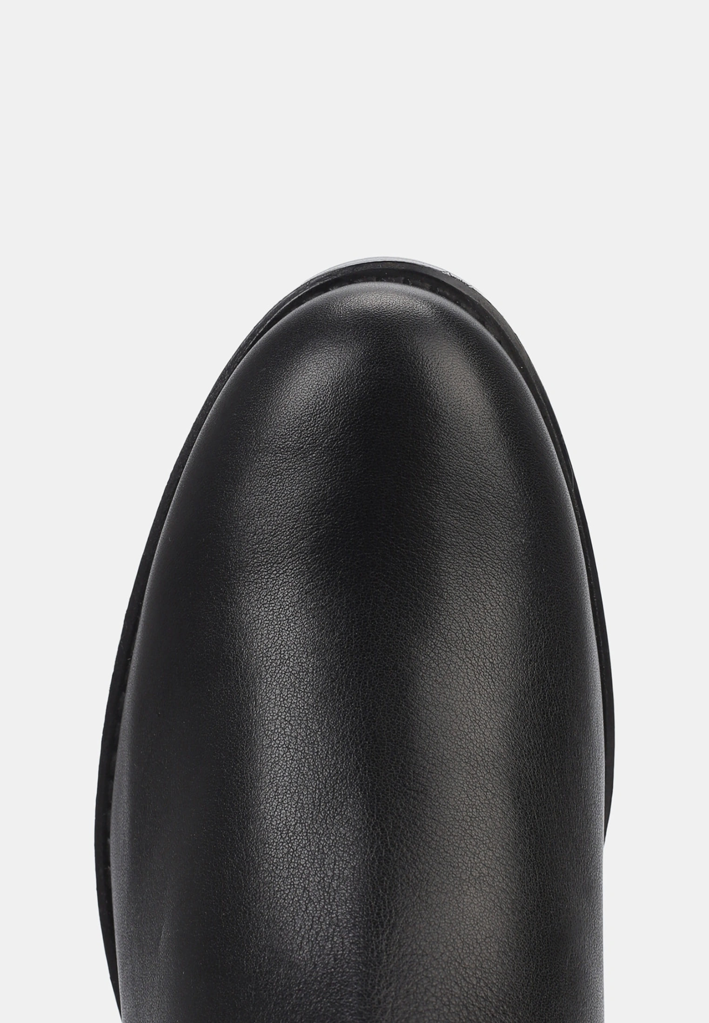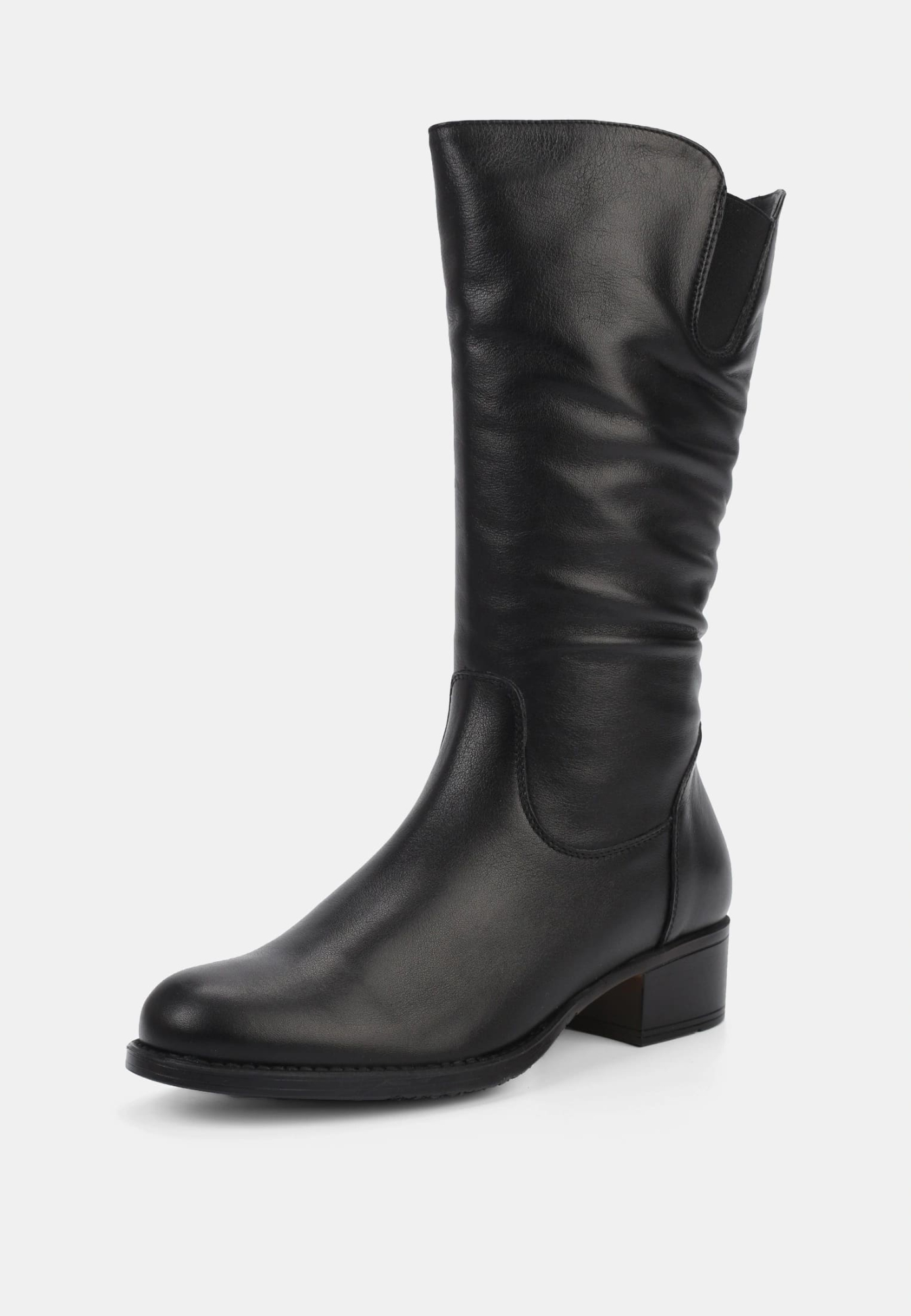 Элегантные черные сапоги из мягкой натуральной кожи, сочетающие изысканный дизайн и функциональность. Утончённый силуэт с лёгкой драпировкой придаёт образу женственность и утонченность, а удобный невысокий каблук обеспечивает стабильность и комфорт при движении. Боковая молния облегчает надевание, а плотная посадка по ноге подчеркивает её стройность. Эти сапоги — универсальное решение для холодного сезона: они гармонично дополнят как деловой наряд, так и повседневный образ, добавив в него нотку уверенности и классической элегантности.
