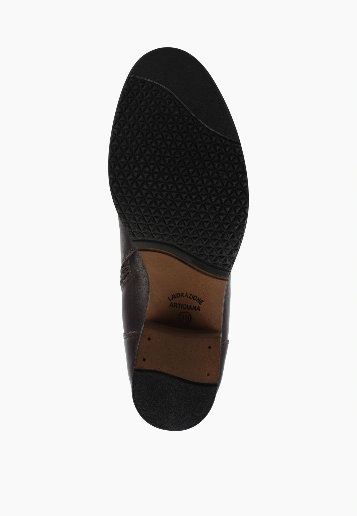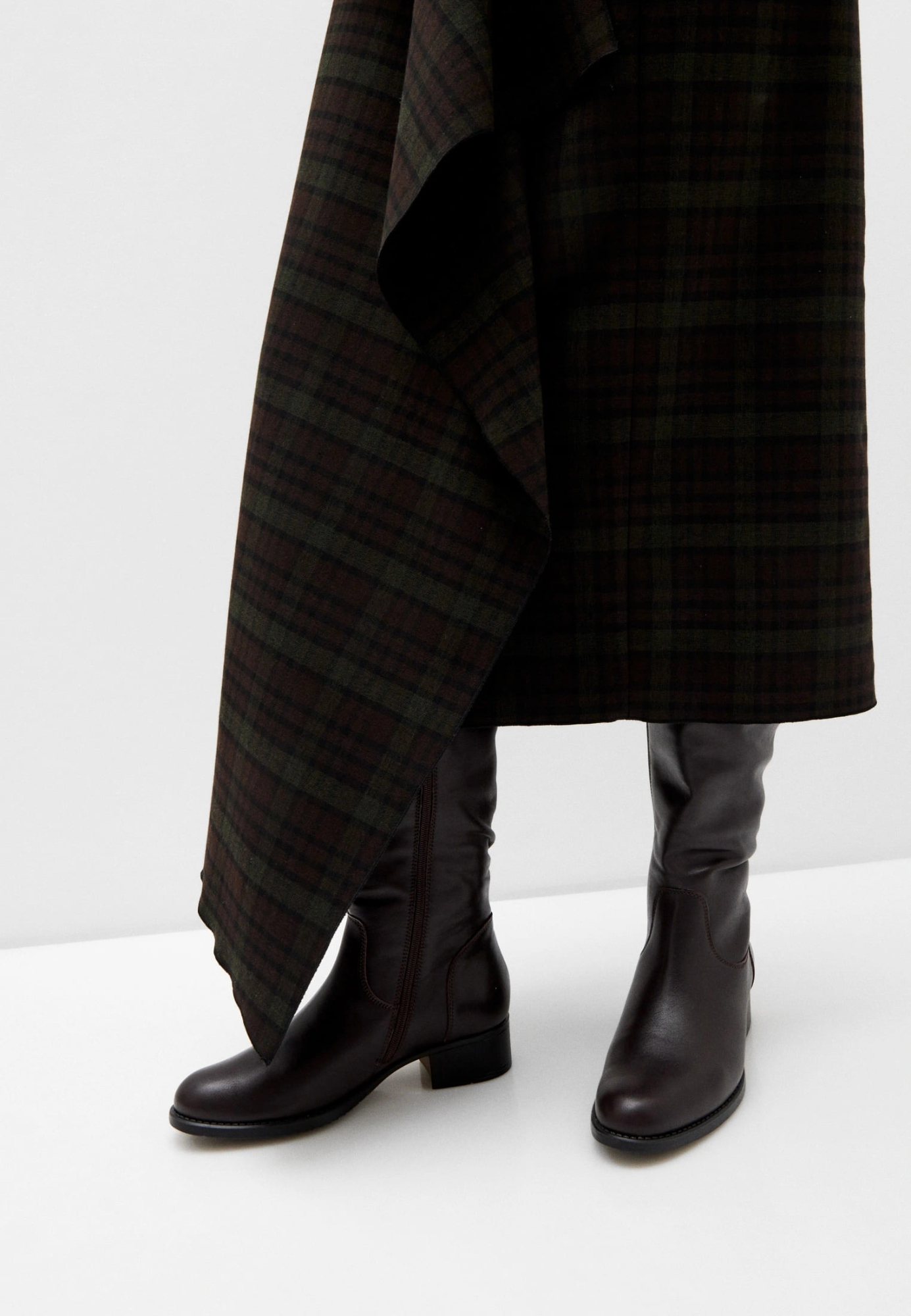 Элегантные коричневые сапоги из мягкой натуральной кожи, сочетающие изысканный дизайн и функциональность. Утончённый силуэт с лёгкой драпировкой придаёт образу женственность и утонченность, а удобный невысокий каблук обеспечивает стабильность и комфорт при движении. Боковая молния облегчает надевание, а плотная посадка по ноге подчеркивает её стройность. Эти сапоги — универсальное решение для холодного сезона: они гармонично дополнят как деловой наряд, так и повседневный образ, добавив в него нотку уверенности и классической элегантности.