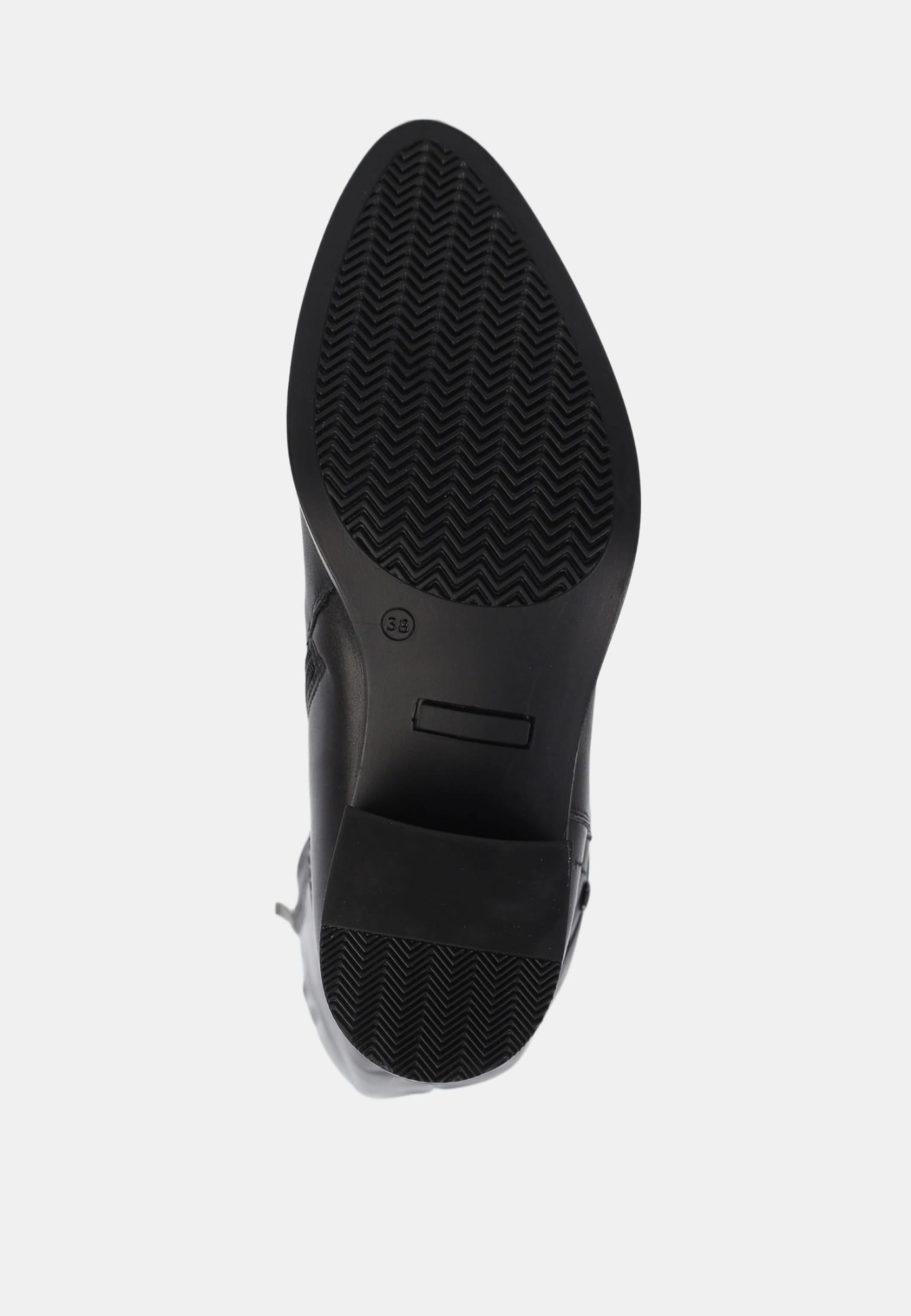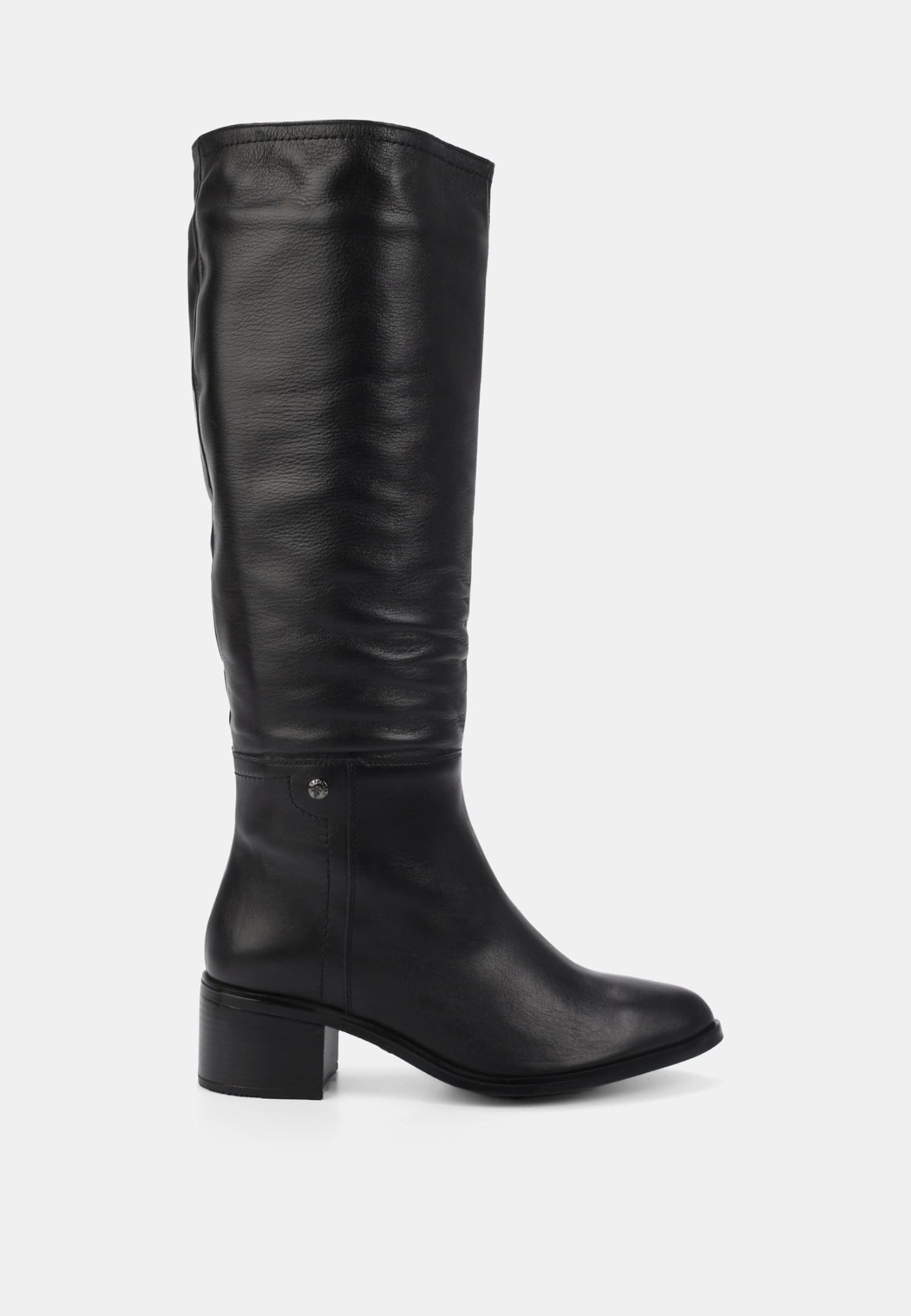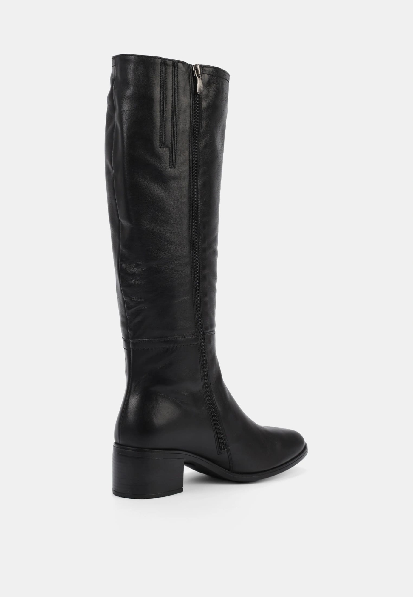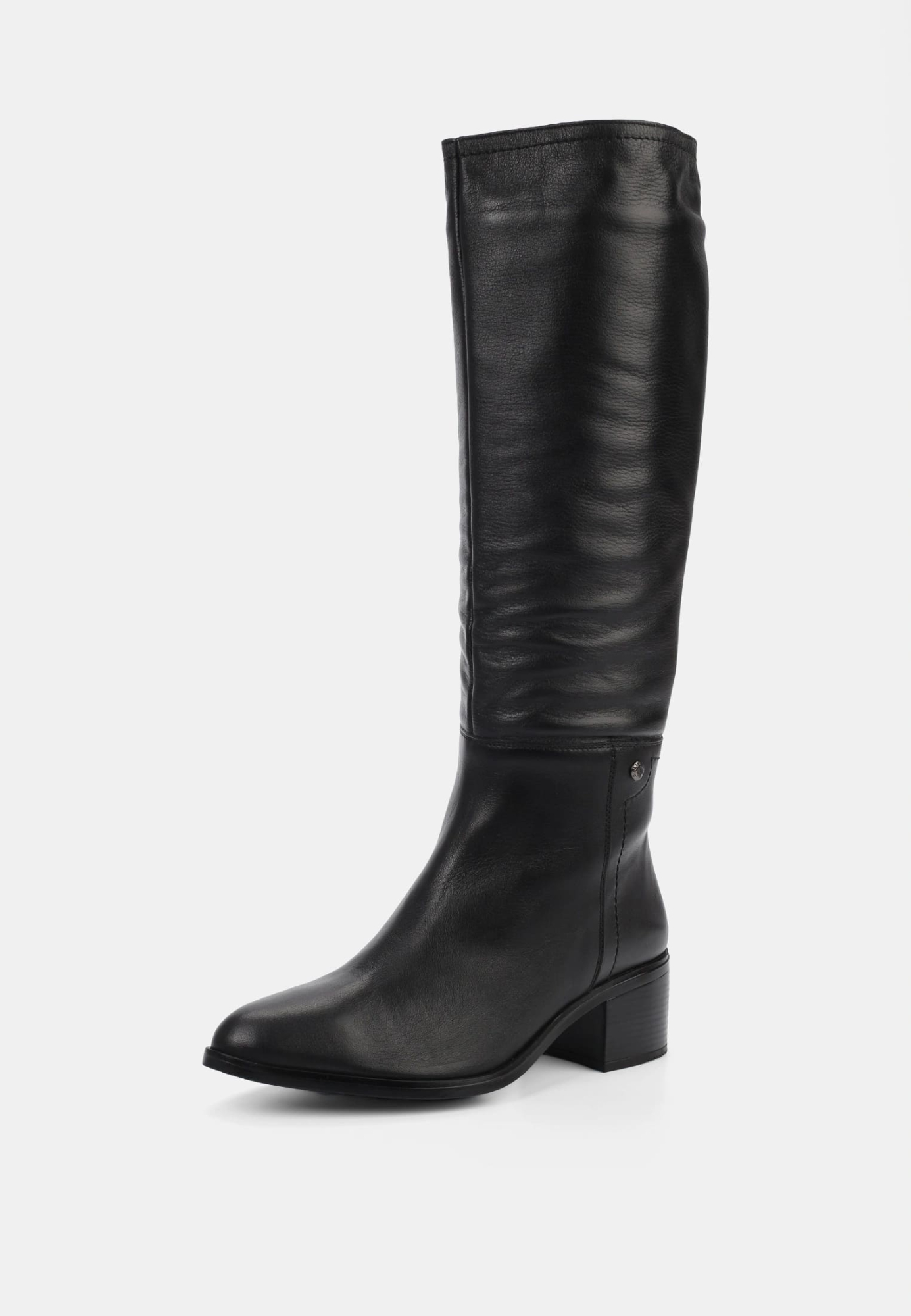 Изящные черные сапоги из мягкой натуральной кожи, в которых сочетаются классика, комфорт и современный минимализм. Гладкий силуэт и аккуратная форма мыска создают элегантный образ, а невысокий устойчивый каблук обеспечивает удобство на каждый день. Застёжка-молния сбоку делает модель практичной, а мягкий блеск кожи придаёт ей утончённость. Эти сапоги станут универсальной основой осенне-зимнего гардероба — идеально сочетаются с платьями, юбками и узкими брюками, подчеркивая женственность и уверенность в каждом шаге.