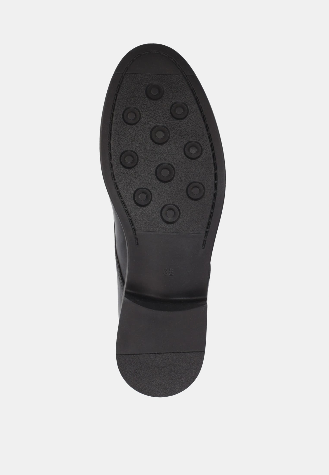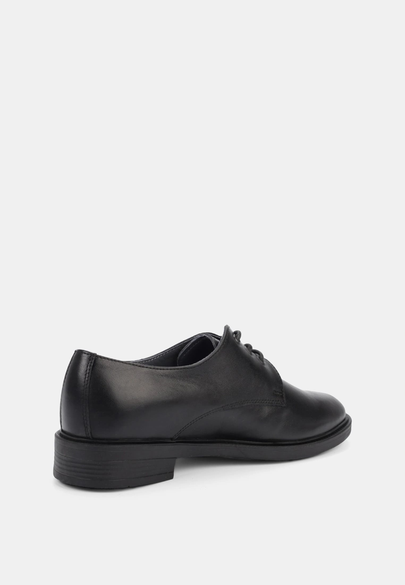 Эта модель обуви — лаконичные черные дерби, воплощающие идеальный баланс классики и современного минимализма. Выполненные из гладкой кожи с мягким матовым блеском, они подчеркивают статус и уверенность владельца, оставаясь при этом универсальными для любого гардероба. Невысокий устойчивый каблук и анатомичная колодка обеспечивают комфорт в течение всего дня, а строгий дизайн делает пару уместной как в офисе, так и на деловых встречах или торжественных мероприятиях. Это выбор тех, кто ценит элегантность, надежность и безупречный стиль в каждой детали.