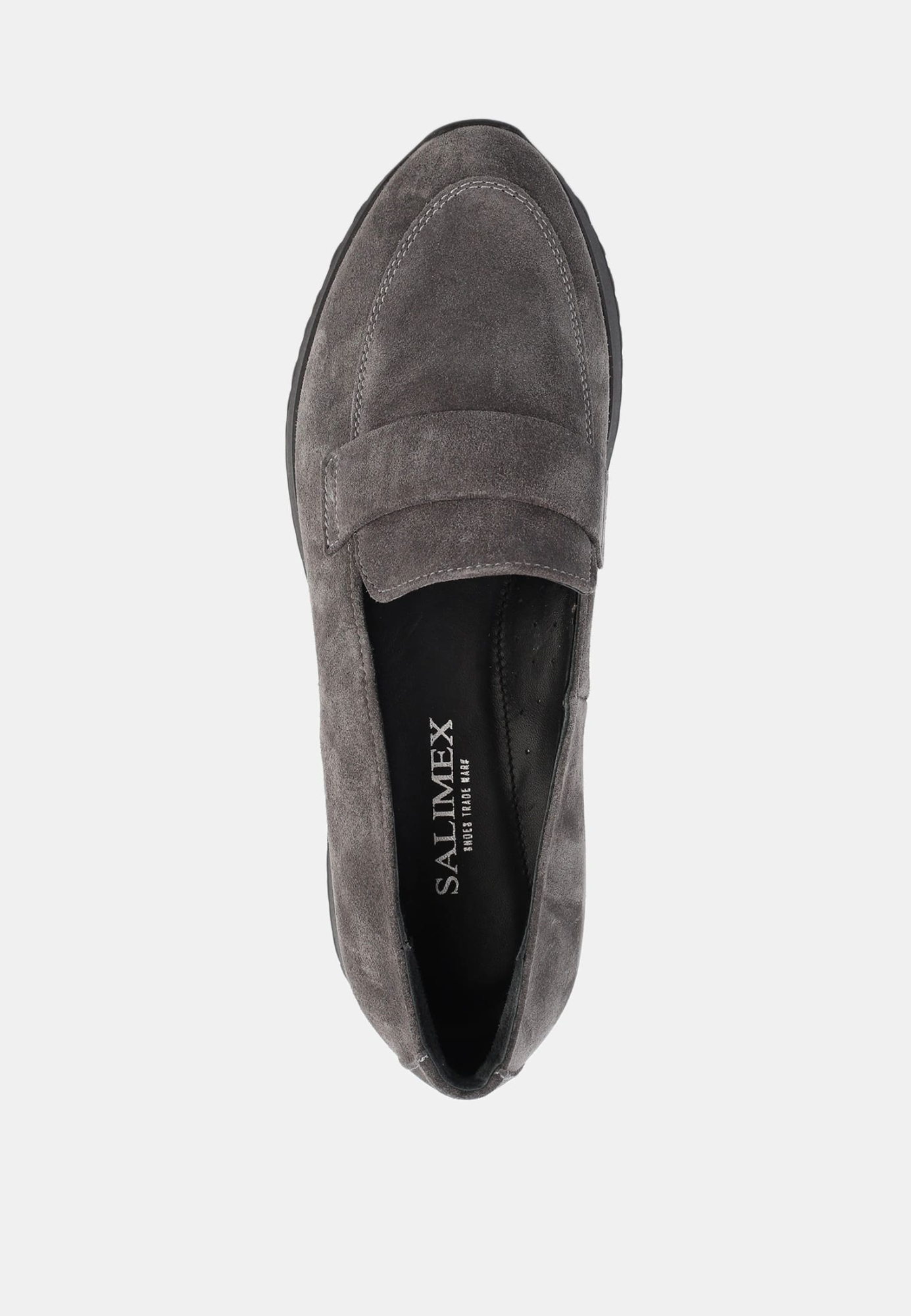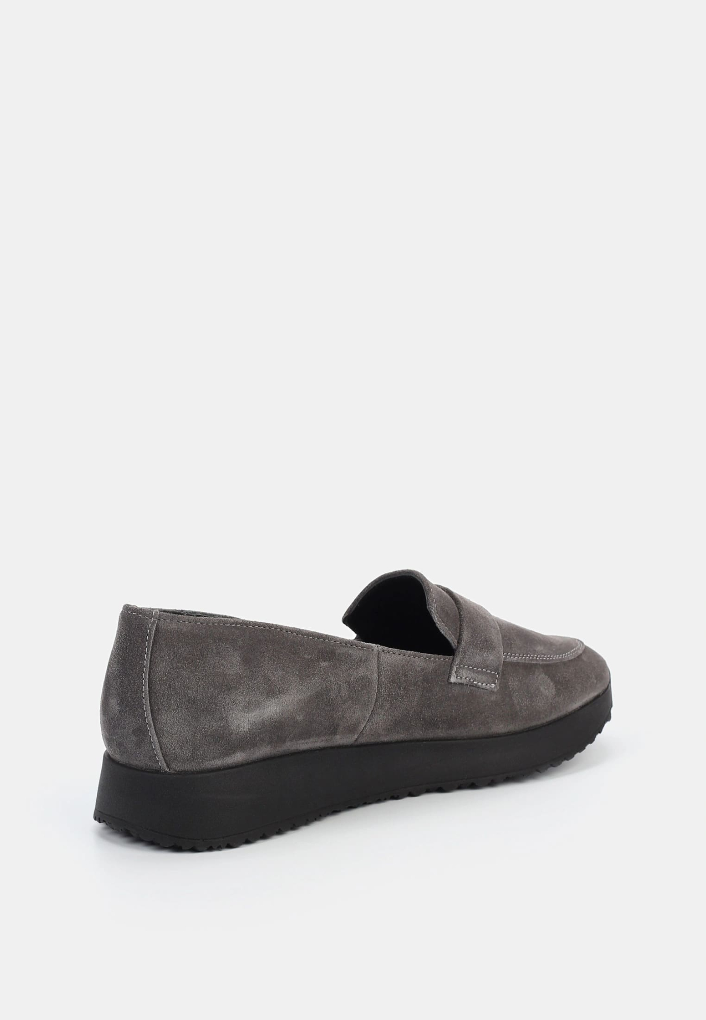 Стильные серые лоферы из мягкой замши, созданные для комфорта и элегантности в повседневной жизни. Лаконичный дизайн с характерным декоративным ремешком на подъёме подчеркивает современный вкус и универсальность пары. Мягкая замша придает обуви утончённую текстуру и визуальное тепло, а легкая платформа обеспечивает устойчивость и удобство при ходьбе. Эти лоферы идеально подойдут для тех, кто ценит сдержанную эстетику и комфорт без компромиссов — отличное решение для офиса, прогулок или городских путешествий.