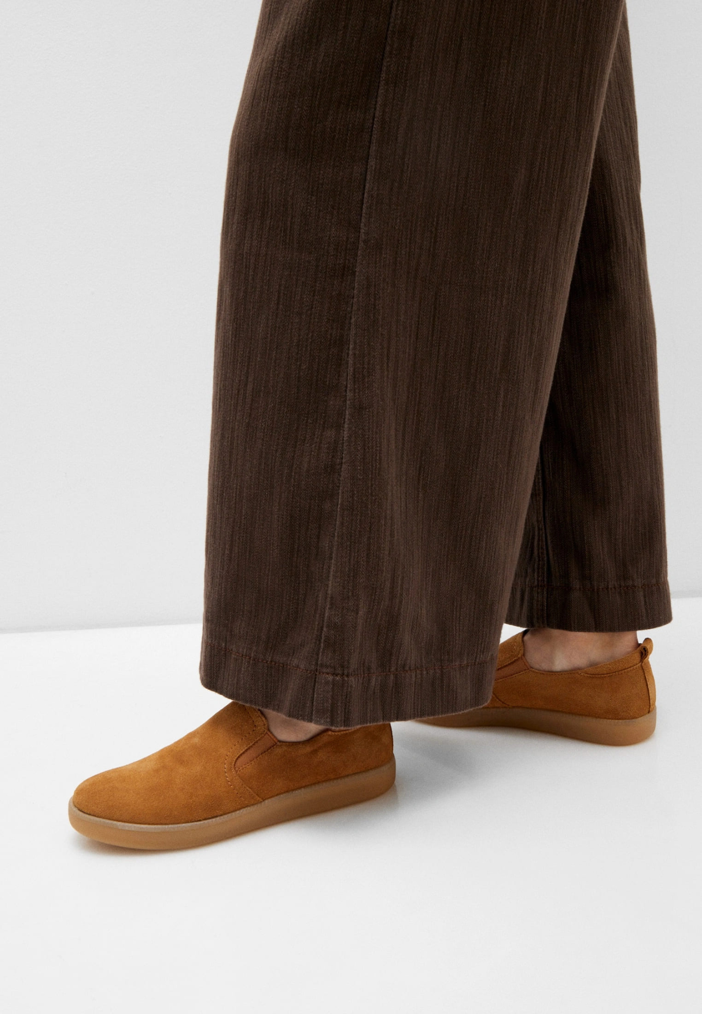 Стильные слипоны из мягкой замши благородного синего оттенка, воплощающие комфорт и элегантную простоту. Лаконичный дизайн без шнуровки подчеркивает современный характер пары, а эластичные вставки по бокам обеспечивают лёгкость надевания и идеальную посадку. Контрастная бежевая подошва придает обуви свежий акцент и делает её универсальной для городского стиля. Эти слипоны отлично подойдут для повседневных образов — они гармонично сочетаются с джинсами, чиносами или льняными брюками, добавляя образу лёгкость, уверенность и непринуждённое изящество.