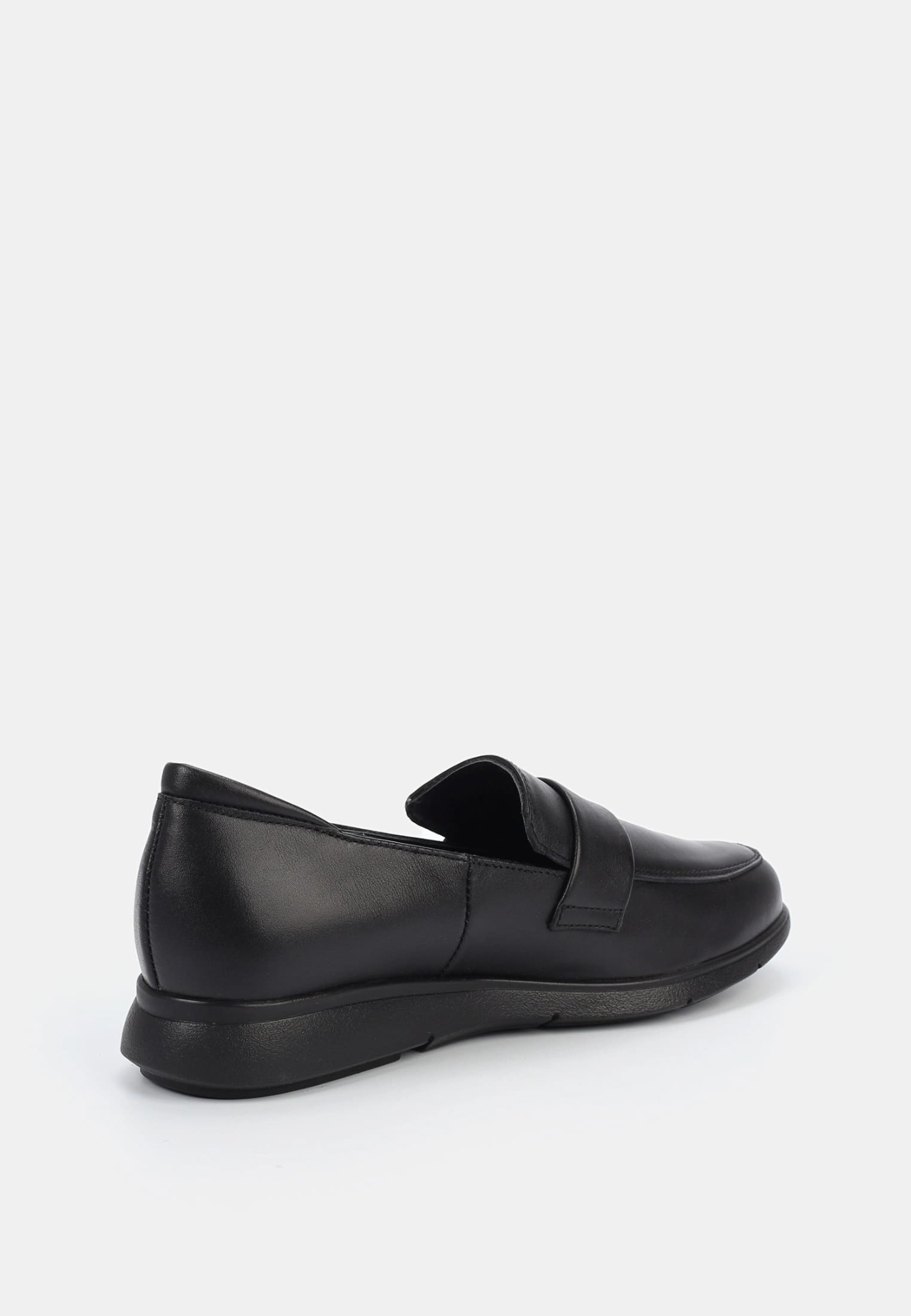Классические черные лоферы в современном исполнении, сочетающие элегантность и удобство. Выполненные из мягкой натуральной кожи, они обеспечивают идеальную посадку и комфорт на каждый день. Лаконичный дизайн с декоративным ремешком придает образу сдержанную утончённость, а гибкая подошва с лёгким приподнятым профилем добавляет ощущение мягкости при ходьбе. Эти лоферы идеально подойдут для офиса, прогулок и путешествий — они легко впишутся как в деловой гардероб, так и в повседневный стиль, добавляя образу уверенность и безупречный минимализм.