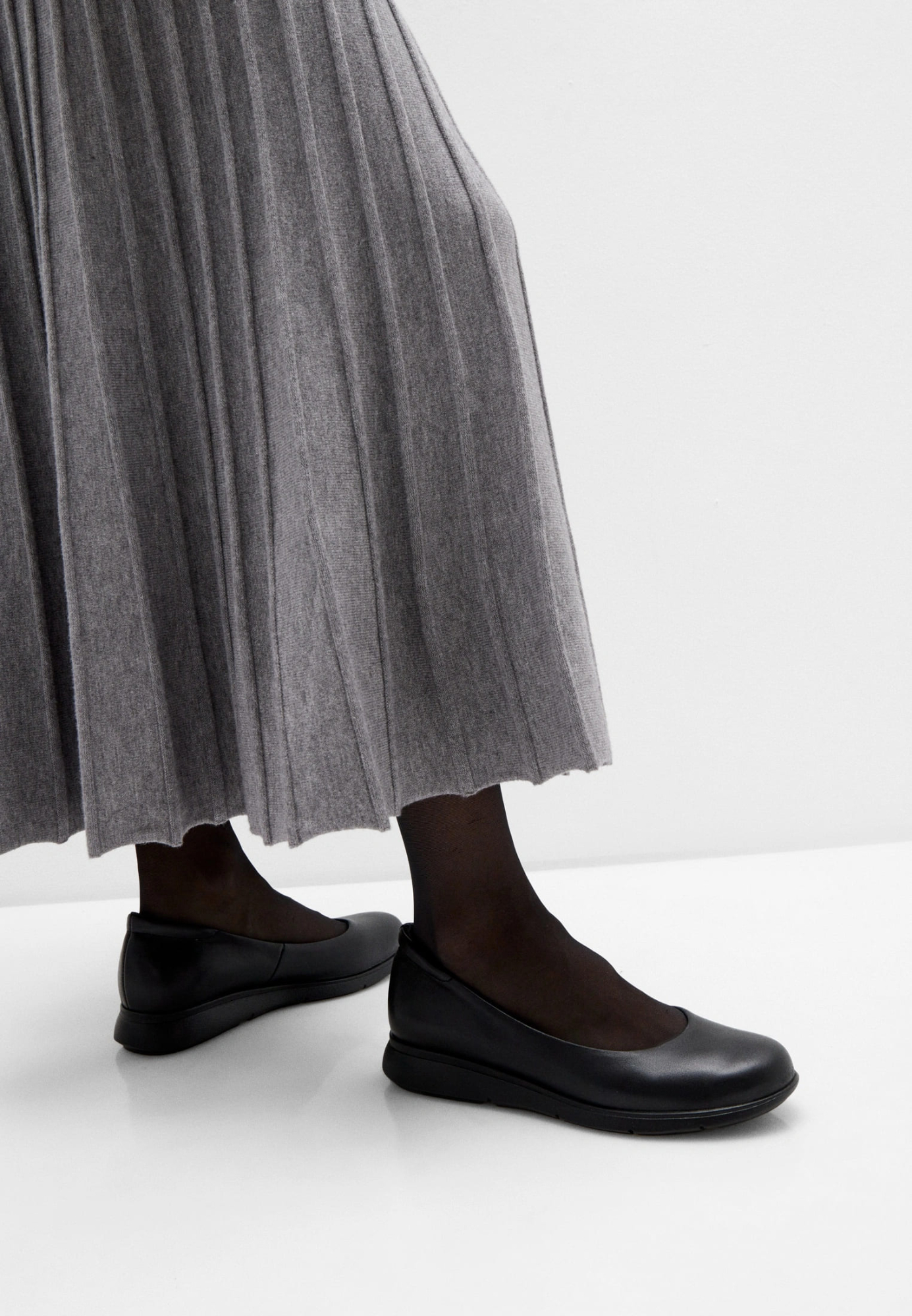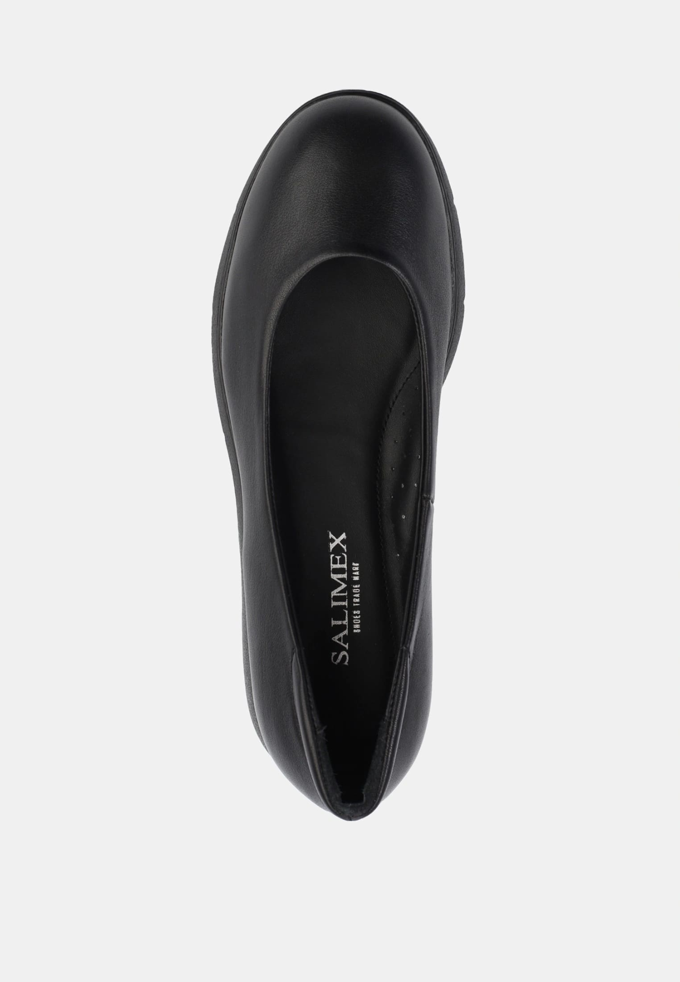 Изысканные туфли на скрытой танкетке, созданные для женщин, которые ценят комфорт без компромиссов со стилем. Гладкая фактура мягкой кожи и лаконичные линии подчеркивают элегантность и универсальность пары. Танкетка визуально удлиняет силуэт, обеспечивая при этом устойчивость и удобство в течение всего дня. Внутренняя отделка с бордовым акцентом добавляет утонченности, а классический черный цвет делает обувь идеальным решением как для офисного дресс-кода, так и для повседневных образов. Это гармония практичности, женственности и современного дизайна.